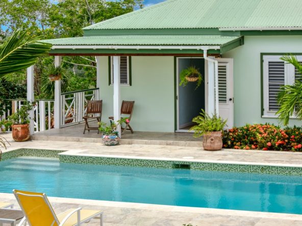 Perched on a hillside at Mount Joy, sits spectacular 3 bedroom/3.5 bathroom home, Mount Joy House. The property is situated on 1.29 acres of fully fenced lush tropical gardens. Truly exquisite, central to the house is a large outdoor swimming pool, with panoramic view of the Caribbean ocean and pasture land.